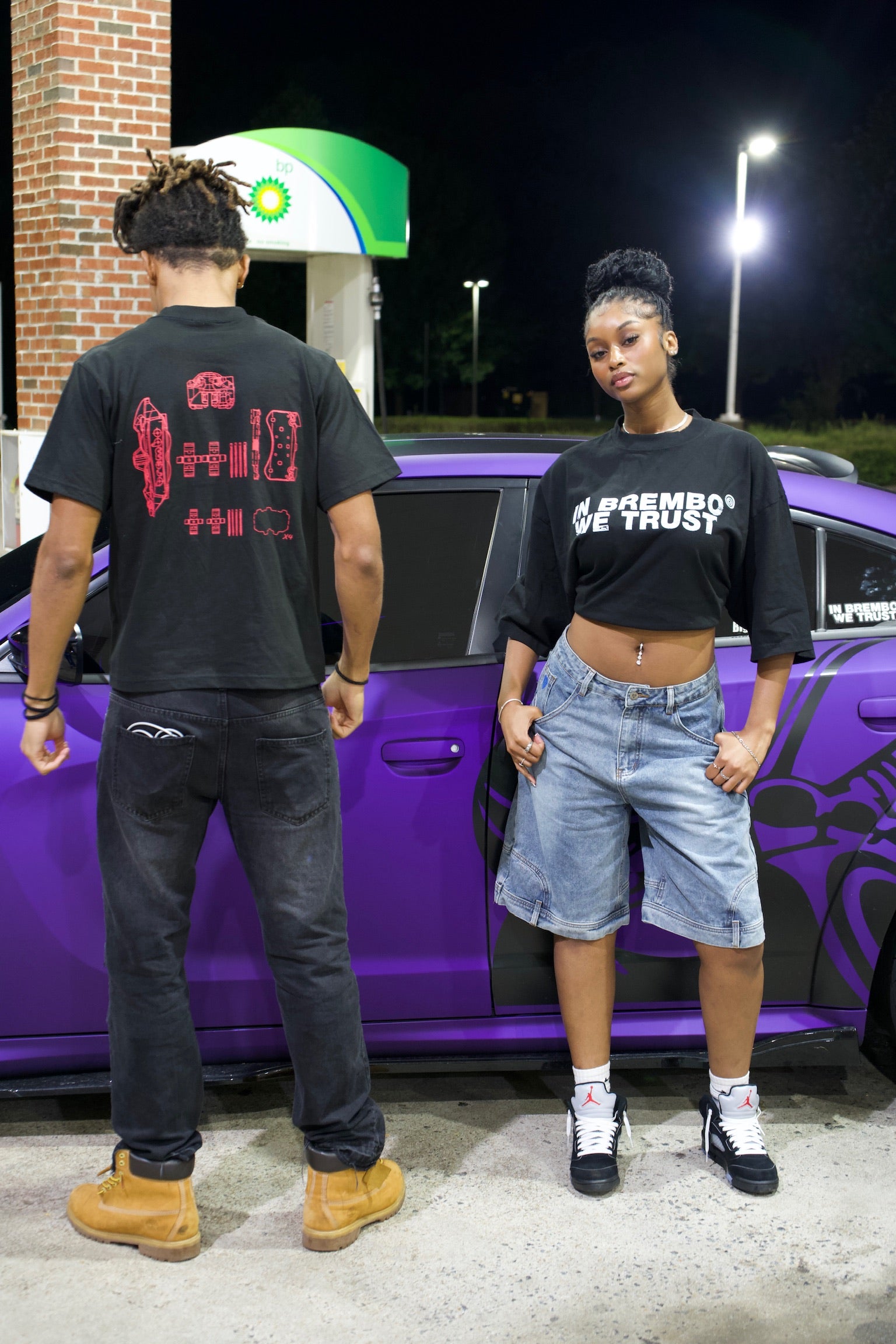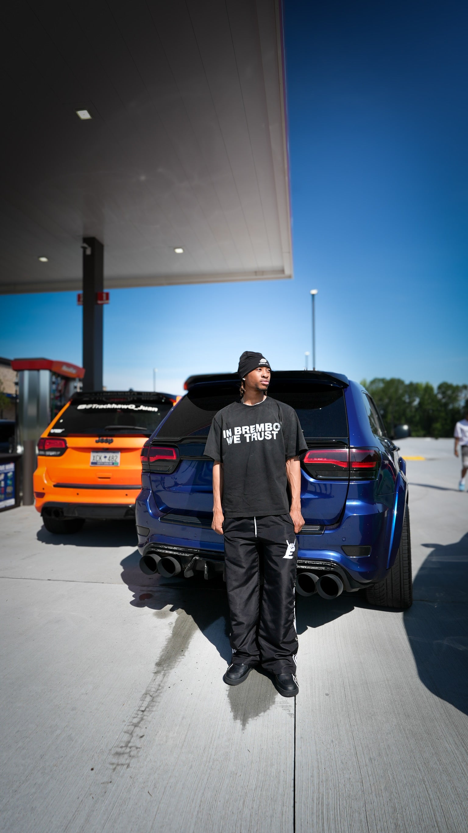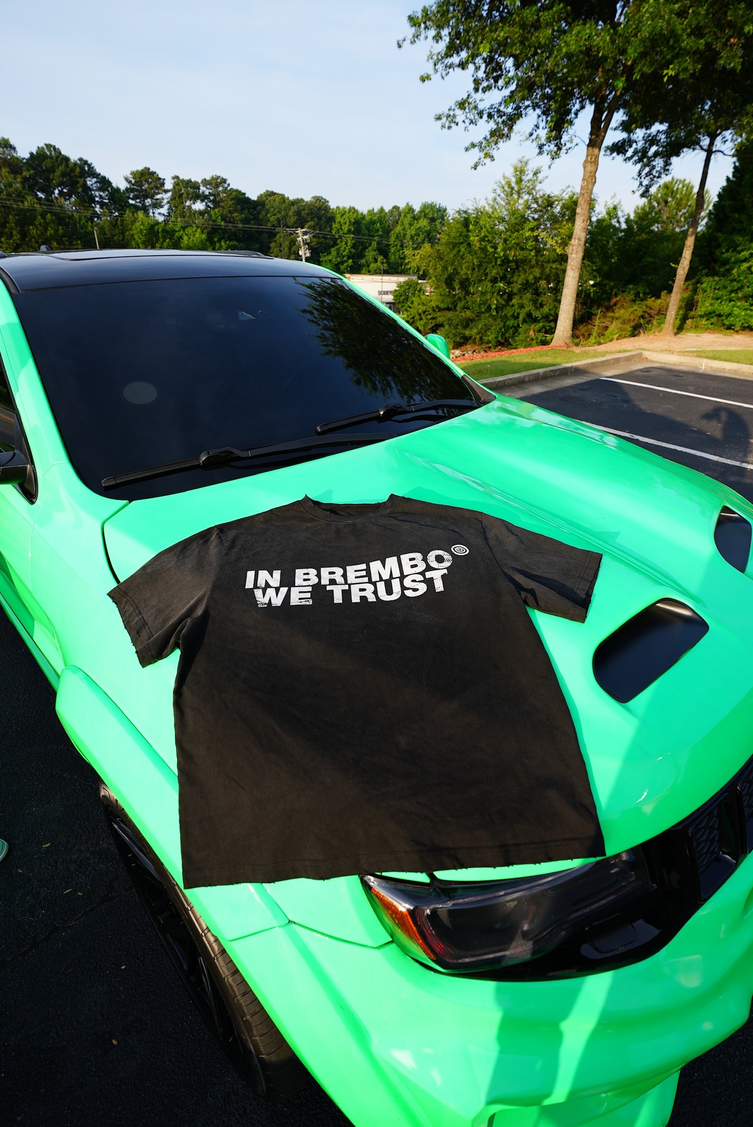BUILT FOR THOSE WHO STOP HARD AND LIVE FAST. THE '' IN BREMBO WE TRUST '' SLIGHTLY BOXY TEE IS A STATEMENT PIECE THAT BLENDS MOTORSPORT CULTURE WITH STREETWEAR, THIS TEE FEATURES A THICK, STRUCTURED FIT WITH DROPPED SHOULDERS AND A CLEAN CREW NECK.