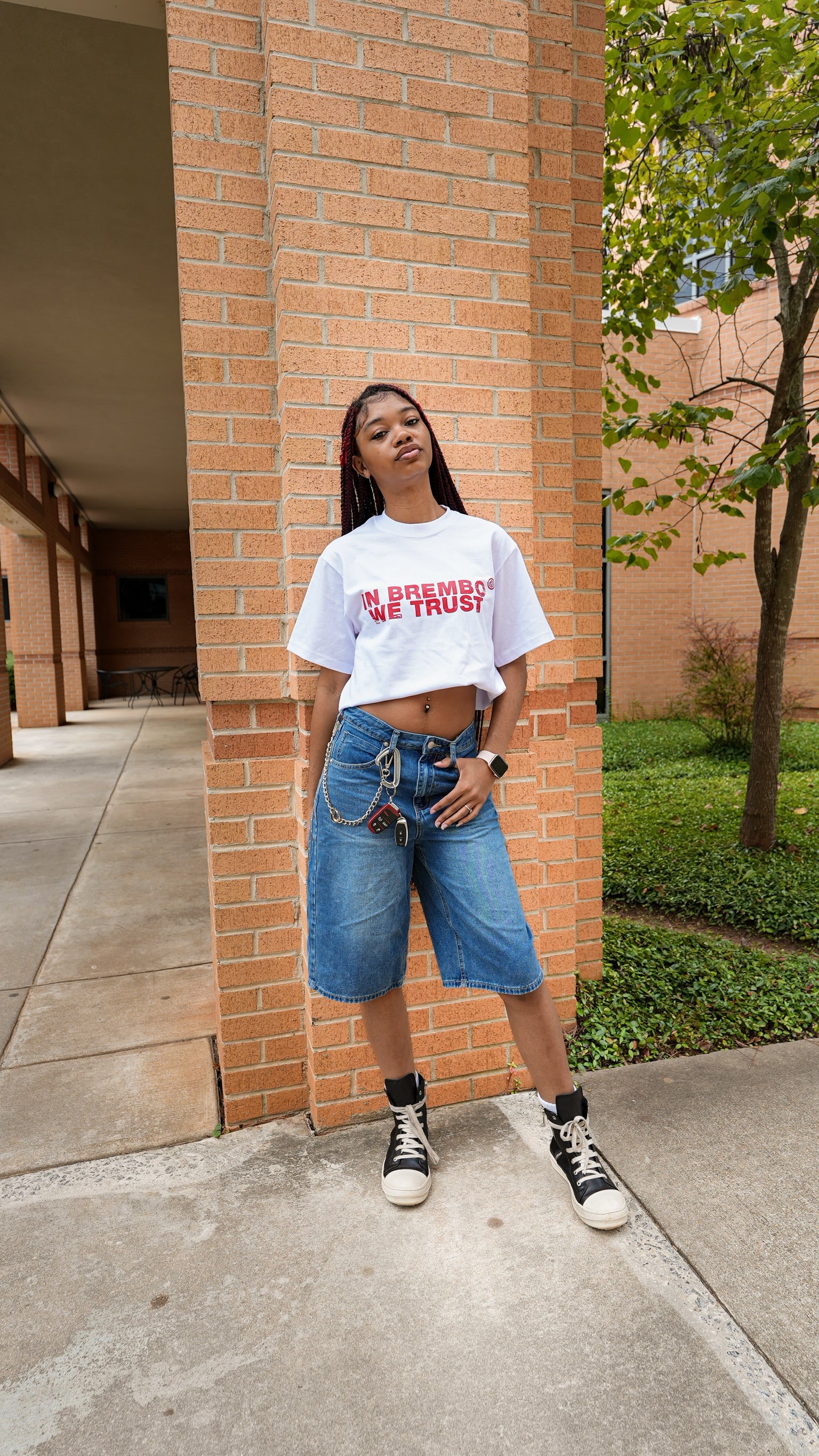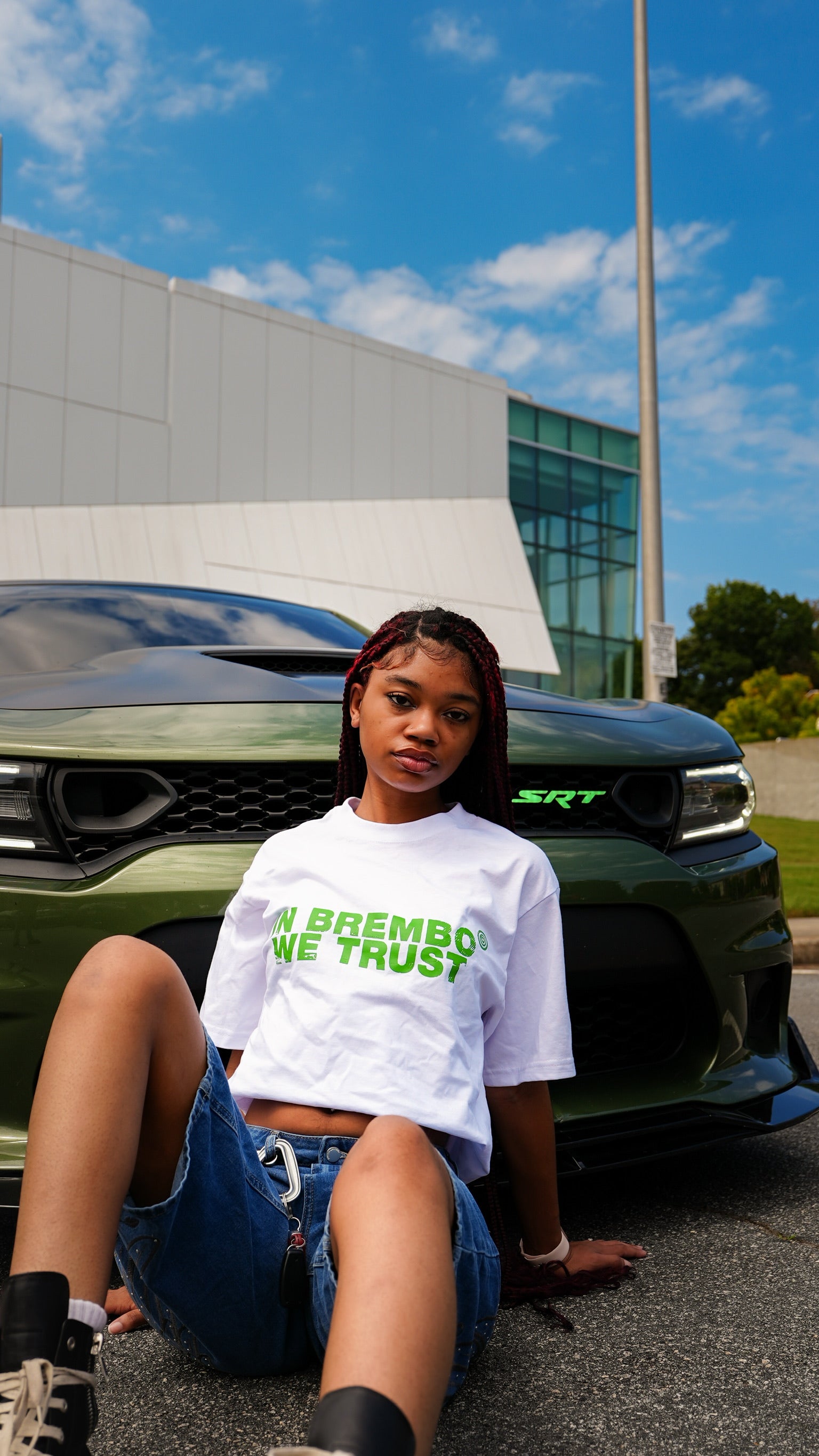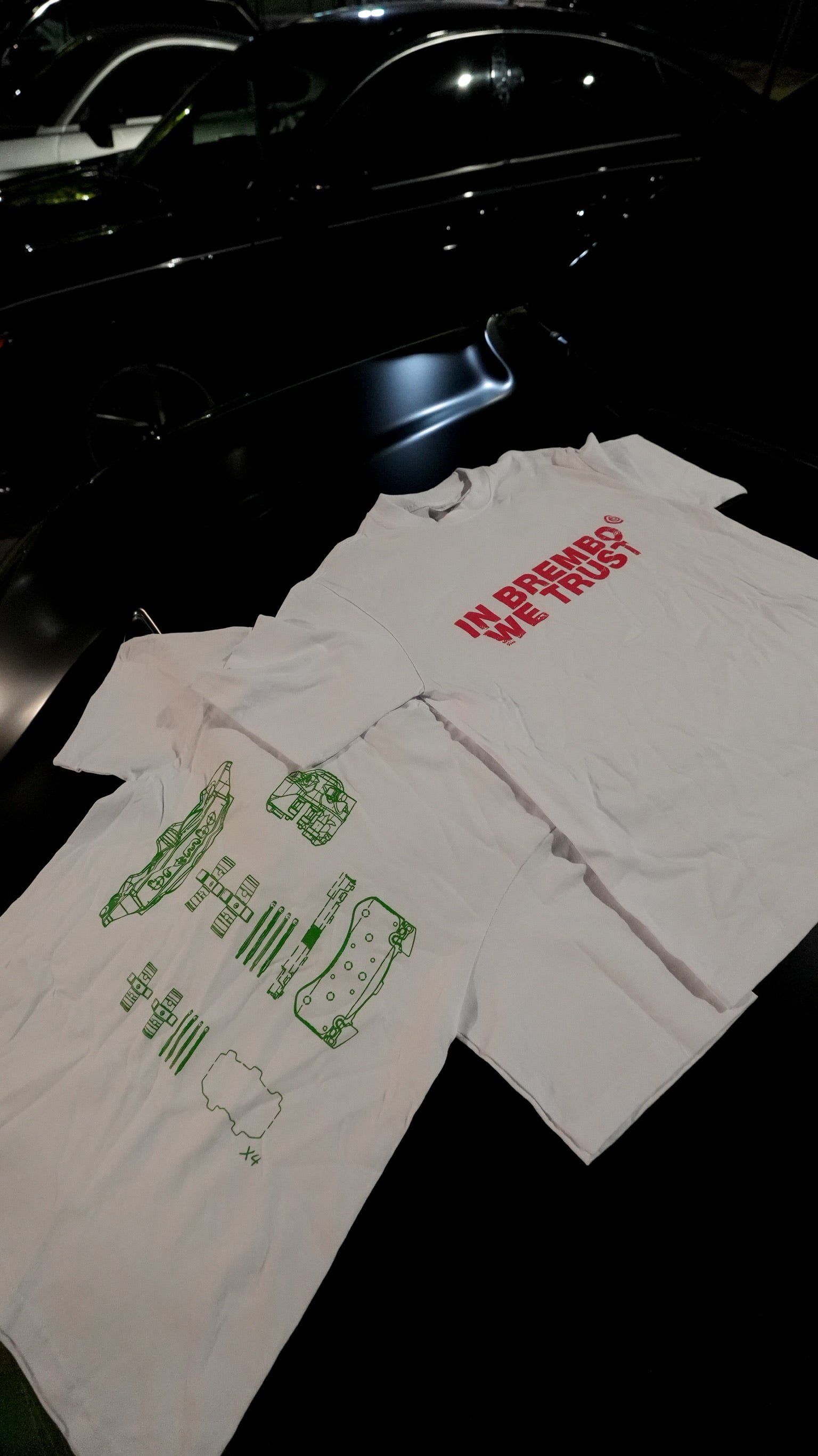 BUILT FOR THOSE WHO STOP HARD AND LIVE FAST. THE '' IN BREMBO WE TRUST '' SLIGHTLY BOXY TEE IS A STATEMENT PIECE THAT BLENDS MOTORSPORT CULTURE WITH STREETWEAR, THIS TEE FEATURES A THICK, STRUCTURED FIT WITH DROPPED SHOULDERS AND A CLEAN CREW NECK.